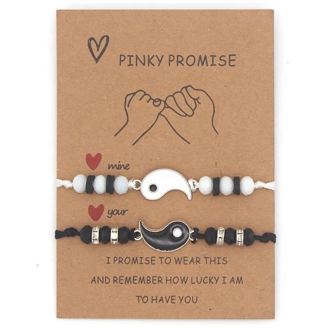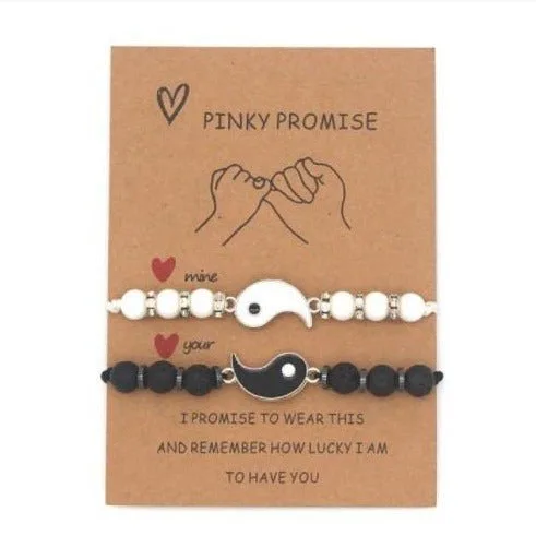 Mettez en avant le concept de complémentarité entre deux personnes grâce à ce magnifique Bracelet Amitié Distance. Symbole de lien fort et durable, il rappelle l’importance de rester connecté malgré la distance physique. Inspiré du symbole Chinois Yin et Yang, ce bracelet souligne à la fois l’unicité et la signification profonde de votre relation.