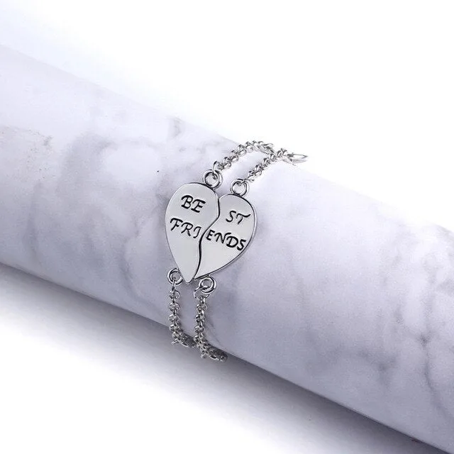 Mettez en avant la signification du bracelet comme symbole d’amitié éternelle. Ce bracelet en deux parties représente une amitié fusionnelle, un bijou spécial à offrir en cadeau symbolique. Personnalisable avec les mots « Best Friends », ce bijou unique est disponible en doré ou argenté pour une qualité et une diversité incomparables.
