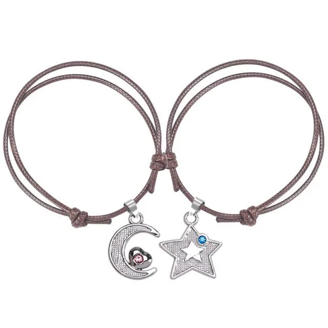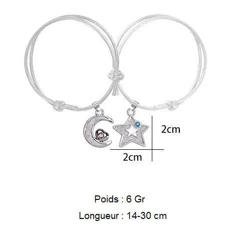 Découvrez le Bracelet Pour Sa Meilleure Amie, le cadeau idéal mettant en avant l’idée de complémentarité entre l’étoile et la lune, symbolisant l’amitié qui vous unit.