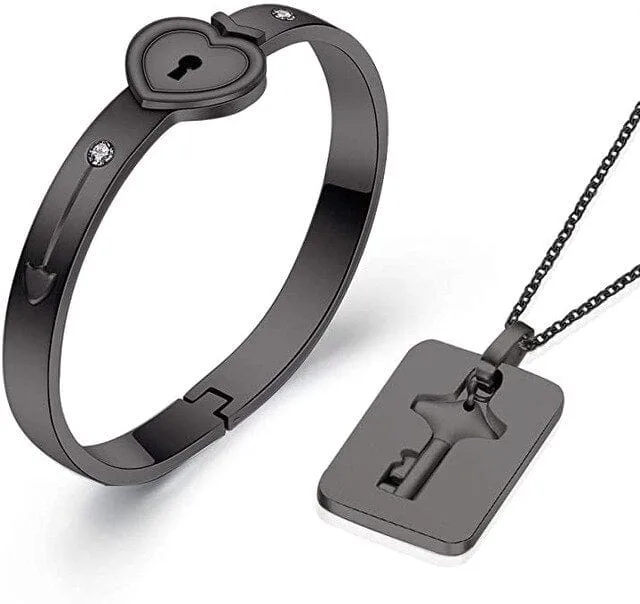 Mettez en avant le symbole fort d’union et d’amour représenté par le design en forme de cœur et la clé amovible. Illustrer la symbolique de l’union et de l’engagement profond du bracelet. Disponibilité en deux coloris élégants : noir métallique et argent brillant. Incarnation de l’élégance et de la profondeur de l’engagement. Caractère unique du bijou renforçant les liens affectifs.
